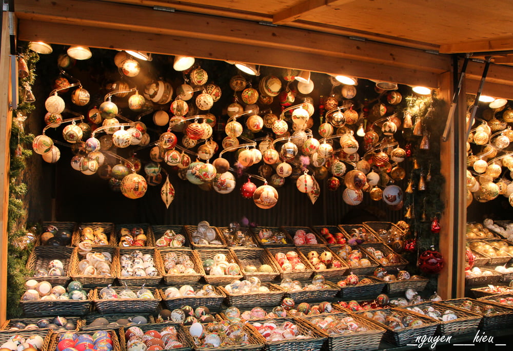 Khu chợ đẹp: Christkindelsmärik (cạnh nhà thờ Strasbourg) chắc chắn là nơi bạn phải tới rồi ; chợ ở các quảng trường Kléber, Gutenberg,…