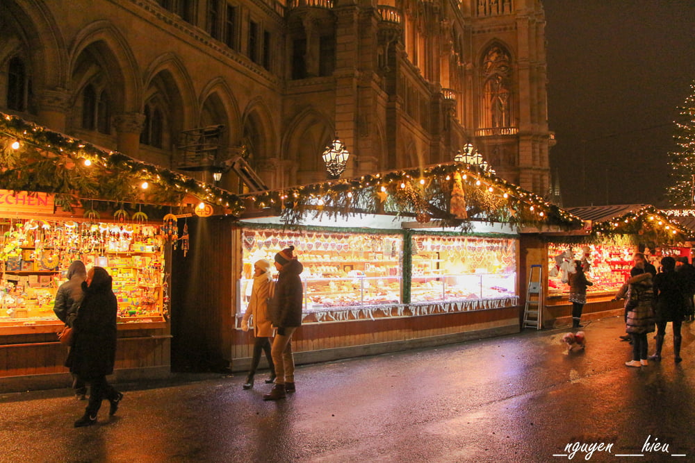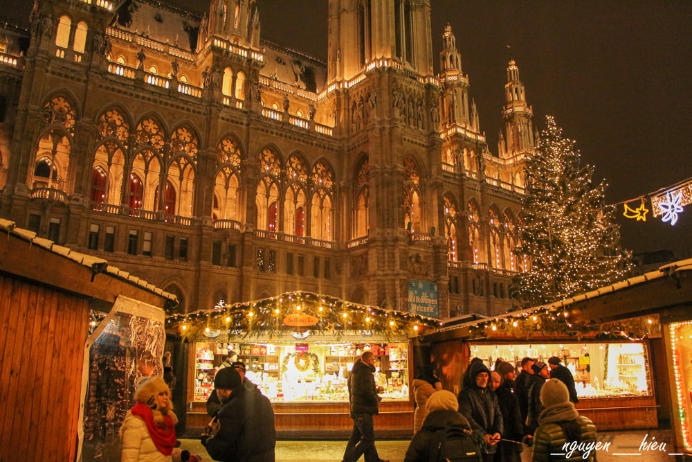 Không đậm chất cổ kính và ấm cúng như ở Prague, các khu chợ Giáng sinh ở Vienna lại có phần lung linh và hoành tráng hơn đôi chút. Cứ tới Giáng sinh là các khu vực quảng trường xung quanh các lâu đài, nhà thờ, toà nhà thị chính – những nơi đẹp nhất của thành phố, đều được trang hoàng lộng lẫy bởi hàng trăm các gian hàng đồ ăn, đồ lưu niệm và cây thông Noël,… Không chỉ thế, nhiều khu chợ còn có cả sân trượt băng, đu quay cho trẻ em vui chơi nữa.