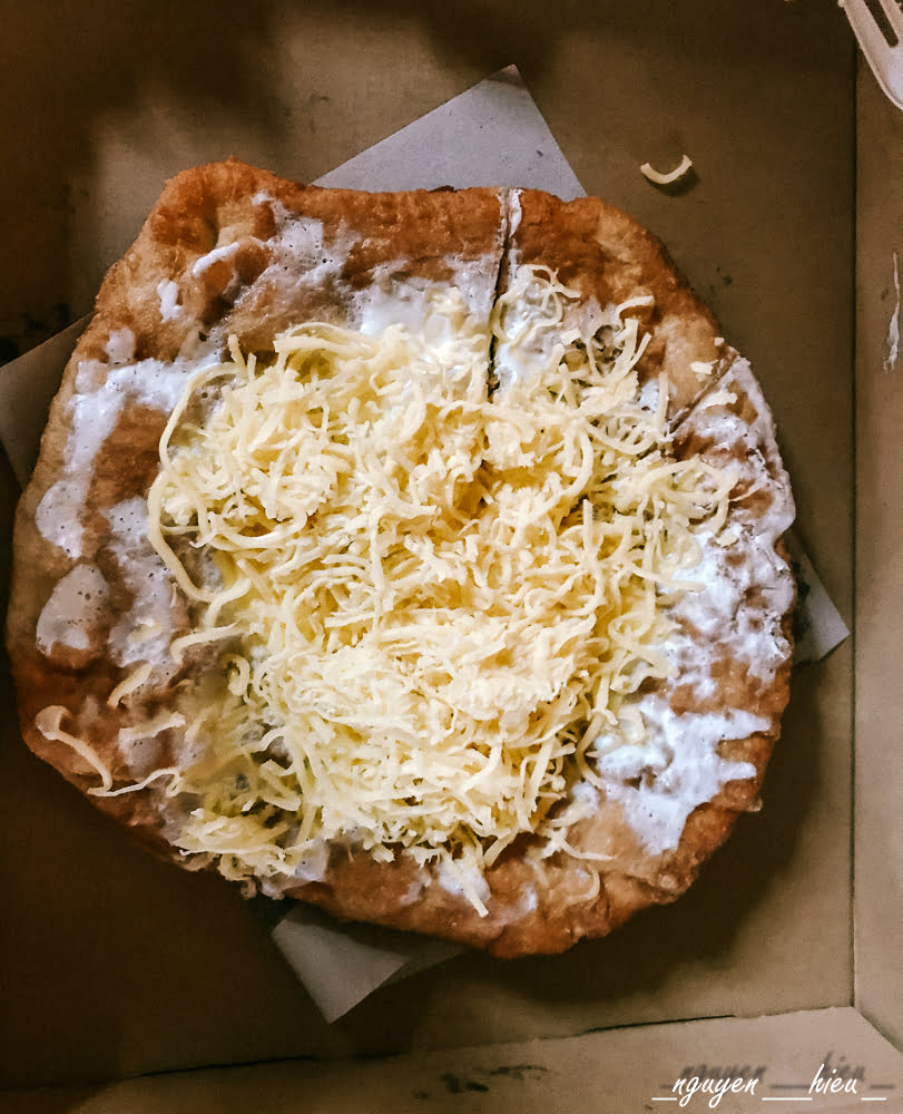 Lángos ngậy ngậy với phô-mai và kem tươi