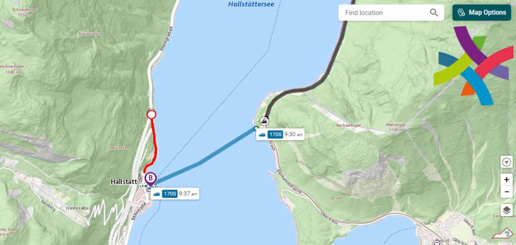 - Chặng 3: Đến Hallstatt Gosaumühle bạn đã rất gần Hallstatt rồi. Từ đây bạn lấy bus 543 đi khoảng 9’ nữa là tới Hallstatt (bến Hallstatt Lahn). Giá vé 2,80€/chiều.