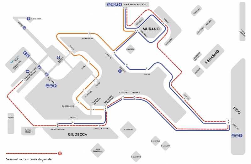 Đây là phương tiện được sử dụng nhiều và phổ biến nhất ở Venice. Các water-bus này được quản lý bởi công ty giao thông công cộng Venice – ACTV.