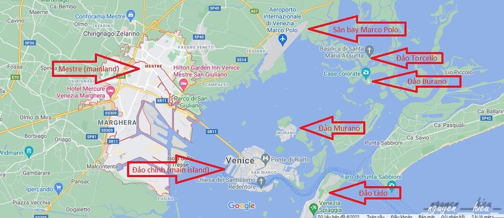 (Và từ đây trở đi trong bài viết, nếu mình dùng từ “Venice“ hay “đảo chính Venice“ hay “thành phố Venice” thì đều là 1 và đều chỉ hòn đảo lớn nhất ấy).
